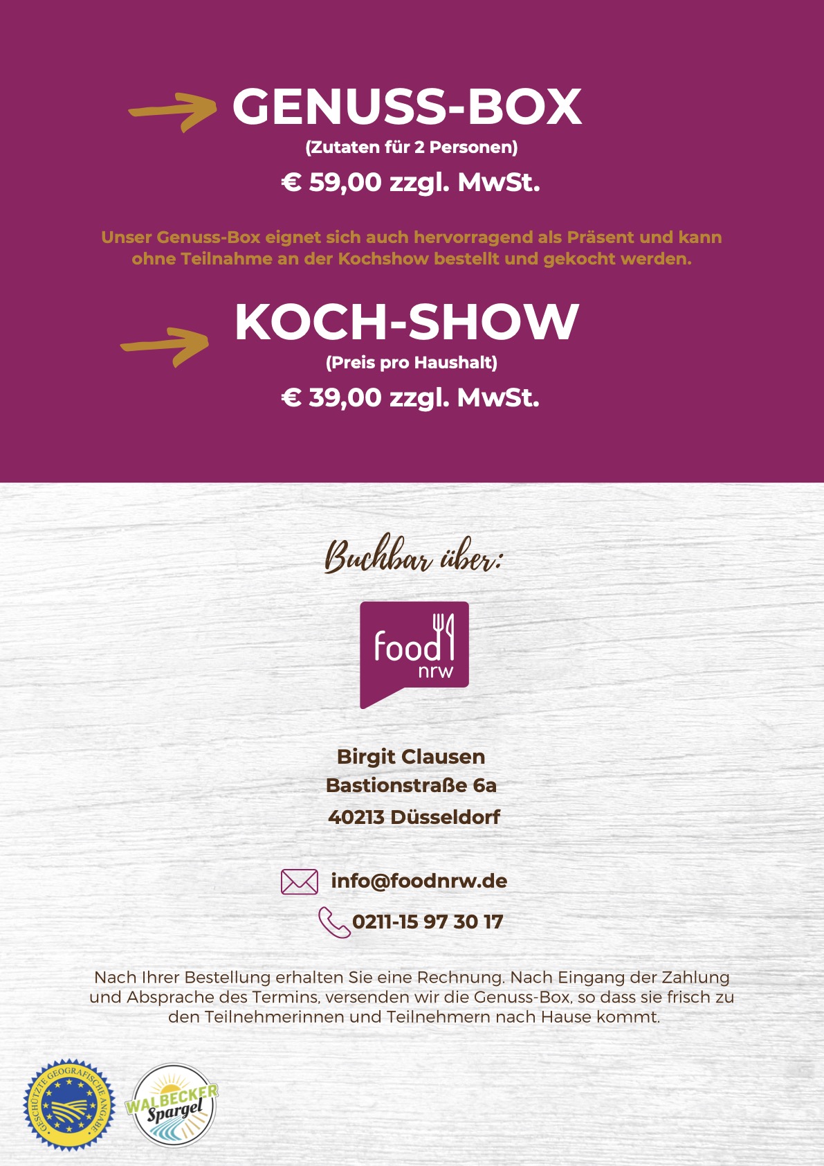 food NRW c/o Brands for Consumers Werbeagentur Bastionstraße 6a D-40213 Düsseldorf Tel.: +49 211 - 15 97 30 17 Fax: +49 211 - 97 63 21 04 E-Mail: info@foodnrw.de